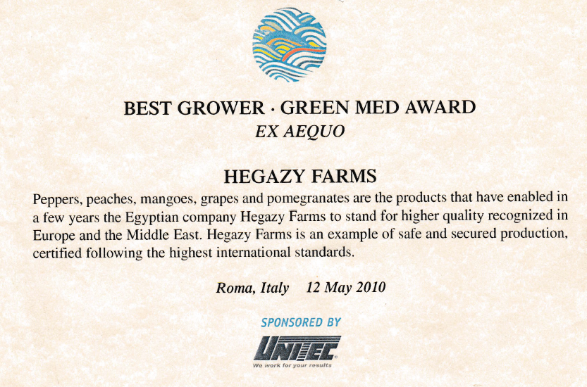 Hegazy Company for Agricultural Projects has started its activity in 1988 and achieved a higher rank in exporting market , by exporting to European and Arab Countries. The Company also produce and provide fresh food to the local market through supplying Various Kinds of Fruits such as ( Grape with all its kinds peach with all its kinds pear pomegranate Citrus Mango )and vegetables such as ( Potato Chili pepper, and Capsicum Cucumber Cherry Tomato )